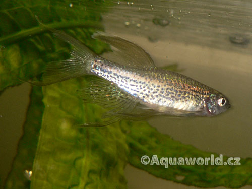 Rozpoznat samce od samice je možné až když máme dospívající ryby, kdy sameček je výrazně hubenější oproti samici. Tyto ryby se vytírají spontálně v jakékoli nádrži, není tedy nutnost ryby kamkoli přelovit pokud nechceme mladé. Při tření se sameček snaží dostat pod bok samičky a snaží se zaklesnout ohnutě přes její hřbet. To je okamžik, kdy jsou jikry uvolňovány a samec je ihned oplodňuje. Rybky necháváme vytírat v poměru 3 až 5 samců na 5 až 10 samic v menších třecích nádržkách. Ty musí být samozřejmě čisté, s čerstvou vodou a zbavené případných škůdců jako jsou šneci atd. Pro účely vytření rybek dáme do této nádrže jemnolisté rostliny (jávský mech), kam budou ryby odkládat jikry. Ryby jsou v prostředí čerstvé vody stimulovány k hromadnému tření. Po vytření musíme rodičovské ryby ihned odlovit. Pro jikry je vhodné, aby voda měla celkovou tvrdost mezi 5 až 8°dGH (není podmínkou) a hodnotu pH 6,5-6,8. Teplotu můžeme o něco málo zvýšit až do horní hranice 26°C. Navíc je tento druh velmi plodný zhruba až o 25% plodnější než Brachidanio rerio. Až do vlastního rozplavání visí plůdek na rostlinách a na stěnách akvária. Poté, co se veškerý potěr rozplaval bude záležet na nás jestli chceme jen silné jedince pro další chov a nebo odchovat všechny kusy. Pokud chceme odchovat všechny budeme krmit hned vařeným žloutkem nebo sušenými vejci v prášku, doporučuji i sera micron, pak nám pravděpodobně přežijí téměř všichni i ti slabší, za nedlouho budeme muset roztřídit rybky podle velikosti. Pokud chceme silné jedince budeme v počátečním období krmit planktonem. Tuto potravu ne všechna mláďata uloví, ale přežijí jen ti nejsilnější a v budoucnosti nás mine problém s velikostním tříděním. Navíc do budoucna získáme přirozeným výběrem kvalitní chovné jedince. Když mladé rybky dosáhnou velikosti asi 15 mm, velice dobře přijímají jako potravu i pokrájené nitěnky nebo patentky. Rybky dosáhnou dospělosti za přibližně čtyři měsíce v závislosti na kvalitě krmení, teplotě vody, velikosti a čistotě nádrže.