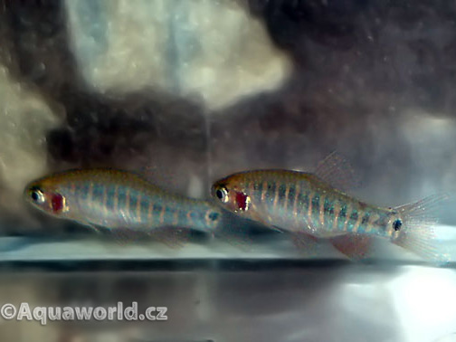 jedná se o překrásnou, mírumilovnou a malou rybku vhodnou do menších dobře zarostlých nádrží. Do Evropy se dostala v roce 2001. Ve své domovině je to rybka početně zastoupená hlavně v jezeře Inlé in Myanmar's Shan State. Její zbarvení je stříbřitě šedé s modrými příčnými pruhy a červeně oranžovými ploutvemi. Je to hejnová rybka, která se nemá chovat v počtu menším jak 10-15 kusů. Pokud je chcete vidět plavat po celém akváriu, je nutné aby v akváriu o objemu 50 litrů bylo nejméně 15 kusů, jinak budou zalezlé někde v trsu rostlin a vylézat jen když bude krmení. Pokud jsou v dostatečném počtu budou to velice aktivní rybky ale vždy budou ve střehu. Pozor na různé kombinace s jinými malými druhy. Samečkové jsou rivalové, kteří si udělají svá teritoria a vehementně si je brání, někdy se stane že své mladé potomky při úsilí ochránit si své teritorium sežerou. Samičky jsou naprosto mírumilovné jak vůči sobě tak i k ostatním spoluobyvatelům.