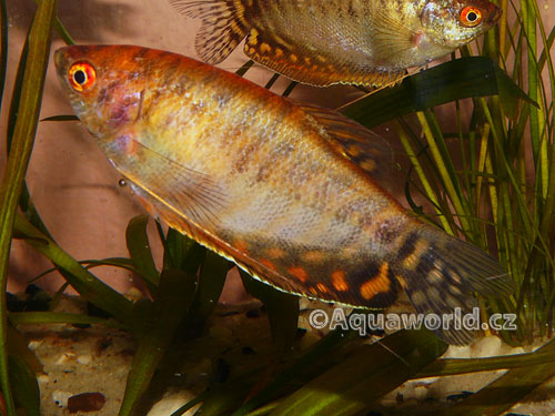 Jedná se o překrásnou, mírumilovnou labyrintku vhodnou do většiny společenských nádrží. Běžně se tyto rybky chovají v párech, ale bez problému se snesou i s několika dalšími rybkami svého druhu. Nejedná se o vlastní druh, ale o barevnou variaci čichavce modrého. Jeho základní zbarvení je zlatooranžové s mapami tmavší barvy. Zdržují se hlavně ve střední a vrchní partii akvária. Akvárium by mělo být dobře zarostlé a s menší výškou. Rybky přijímají kyslík nejen filtrací vody, ale zároveň ho dýchají pomocí labyrintu přímo z atmosféry. Pozor na náhlé ochlazení vzduchu, což je hlavní příčinou onemocnění těchto rybek. Při nadechování studeného vzduchu vnikají zánětlivá onemocnění labyrintu.